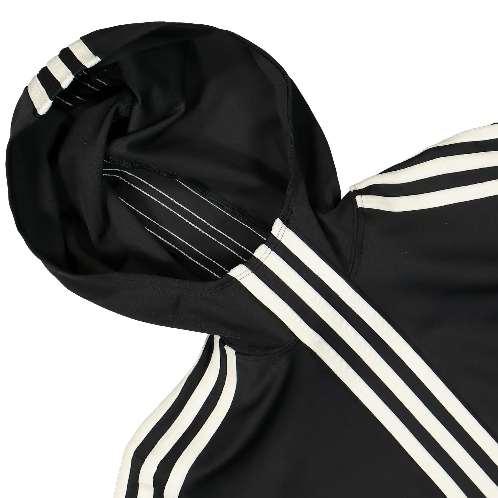 The H Base Layer, created by avavav and adidas, is a stylish black shirt featuring a hood and thumb holes in the cuffs. Made of polyester, this shirt offers a tight fit for optimal comfort and support. Additional touches such as three white stripes and embroidered logos add a touch of sophistication to enhance any active lifestyle.