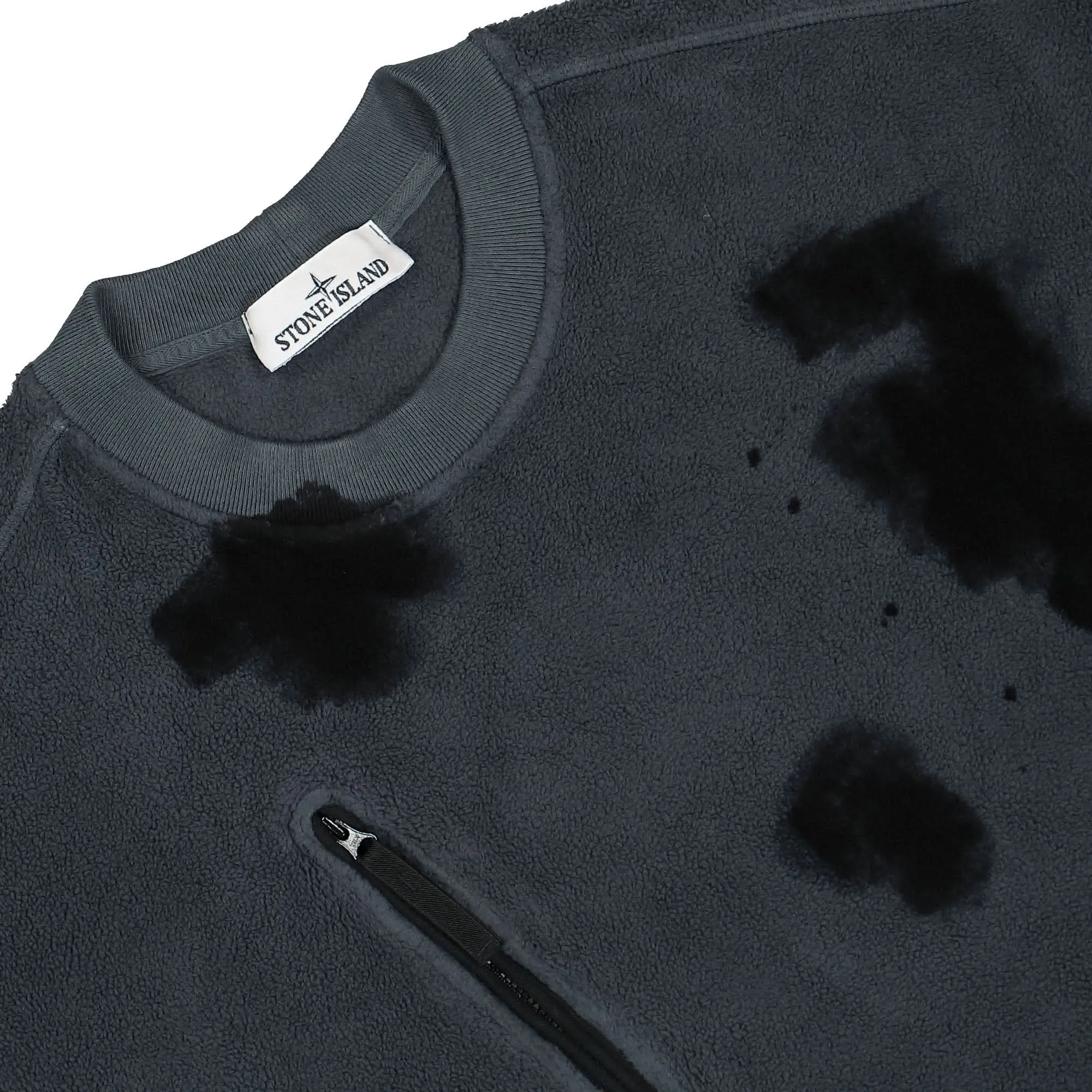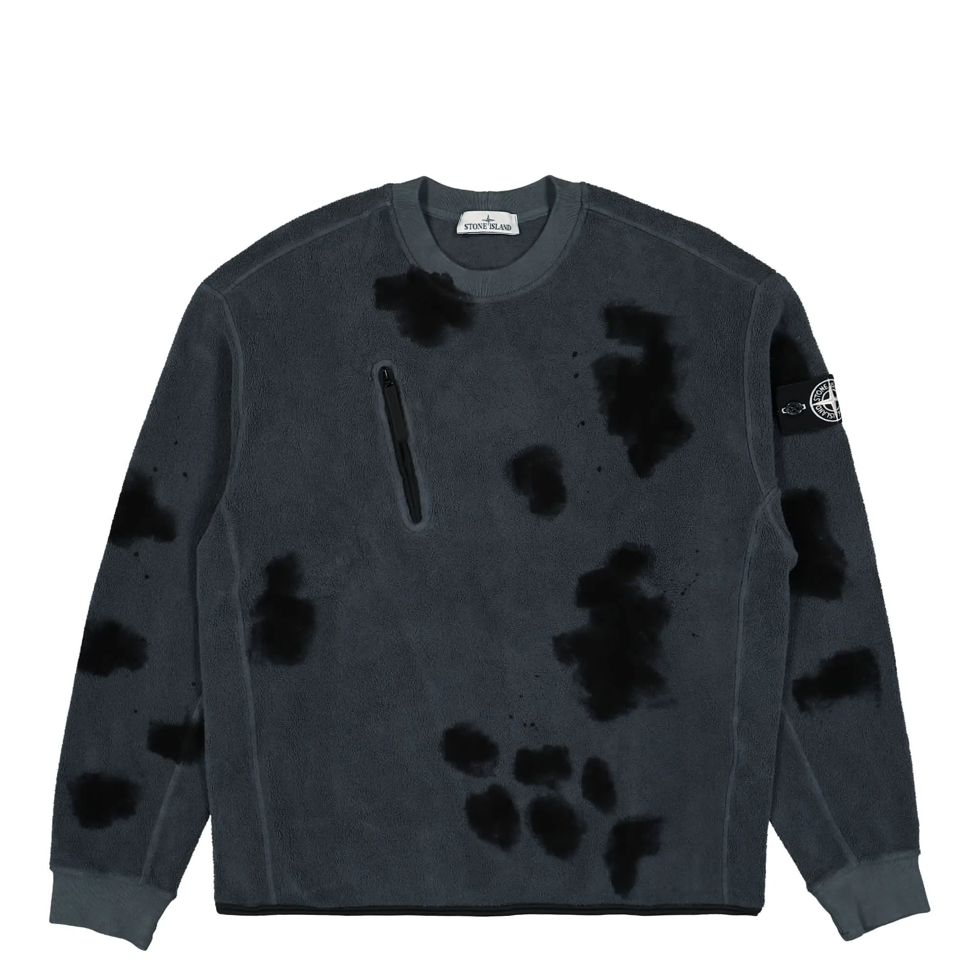 Oversized fit. Ribbed neckline. Centered chest pocket, with slanting zip fastening. White Stone Island fabric research badge on the left sleeve. Ribbed cuffs. Bottom hem edged by stretch black nylon tape.