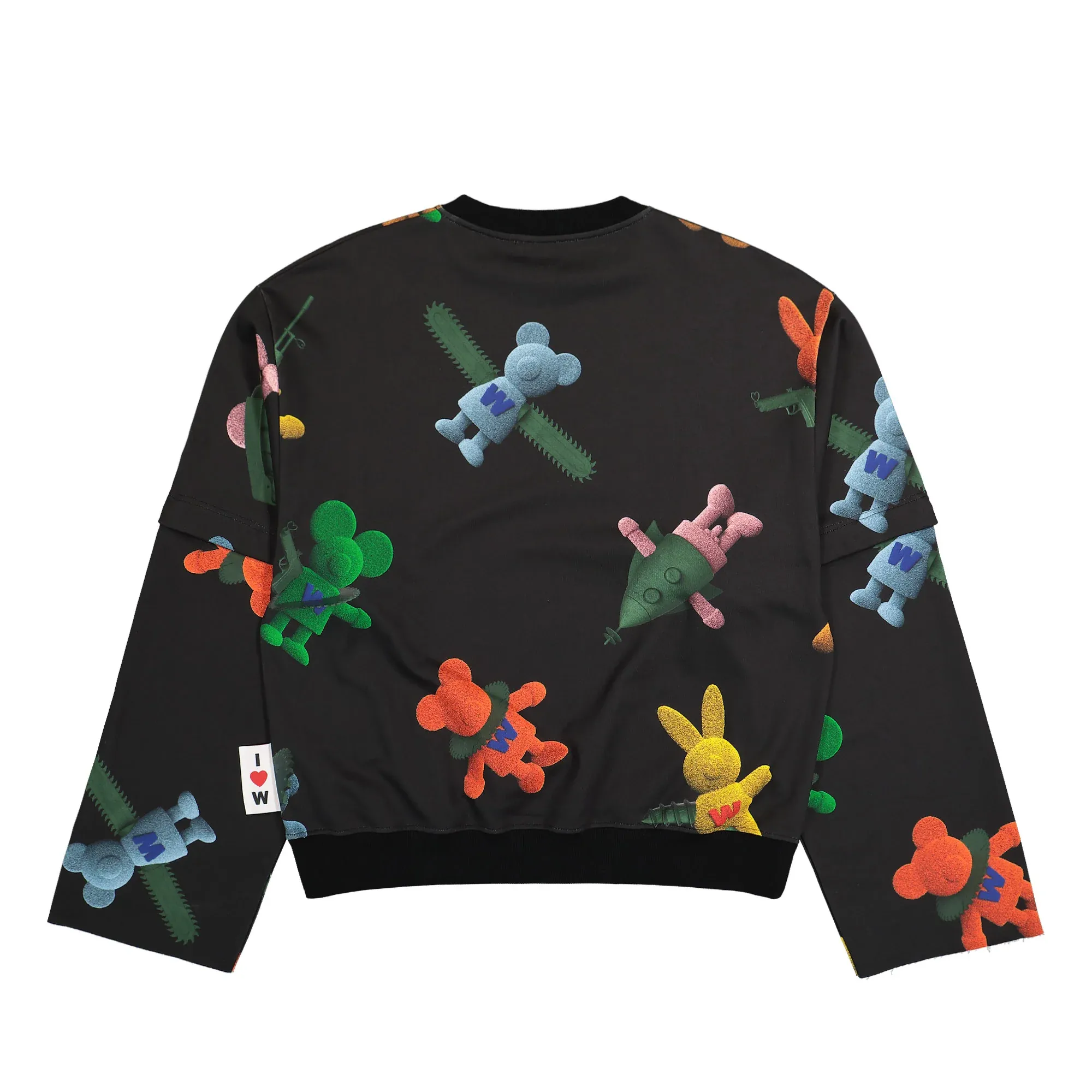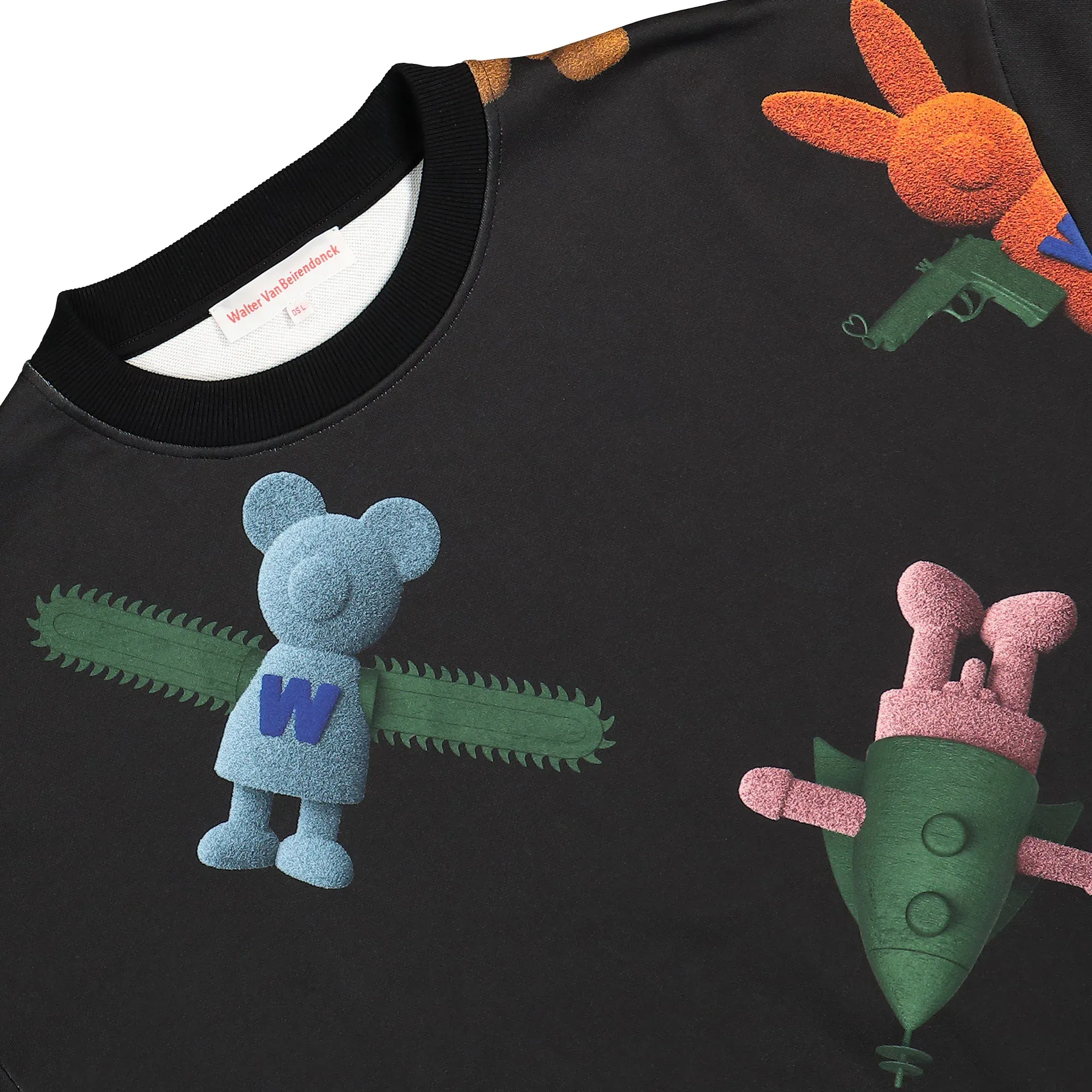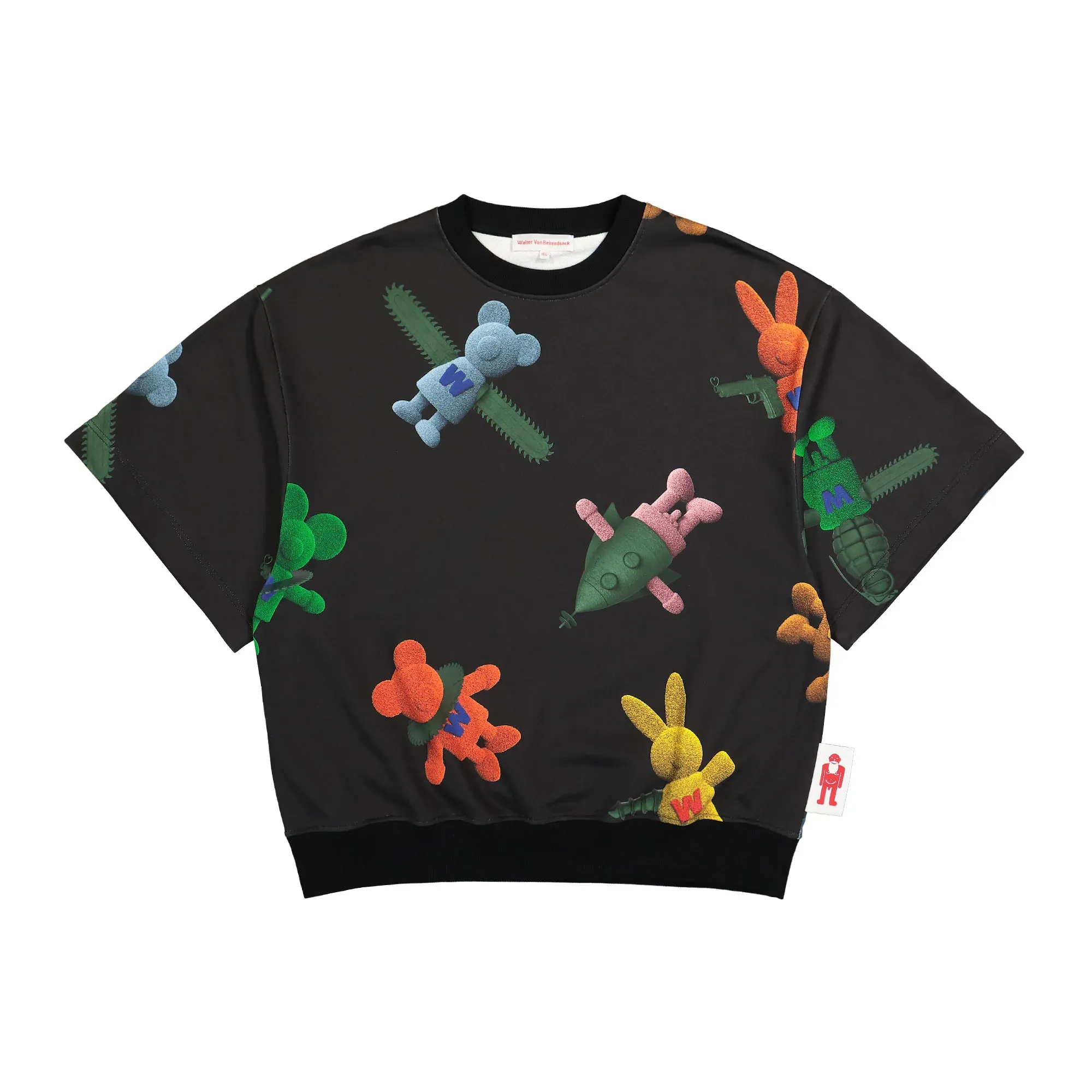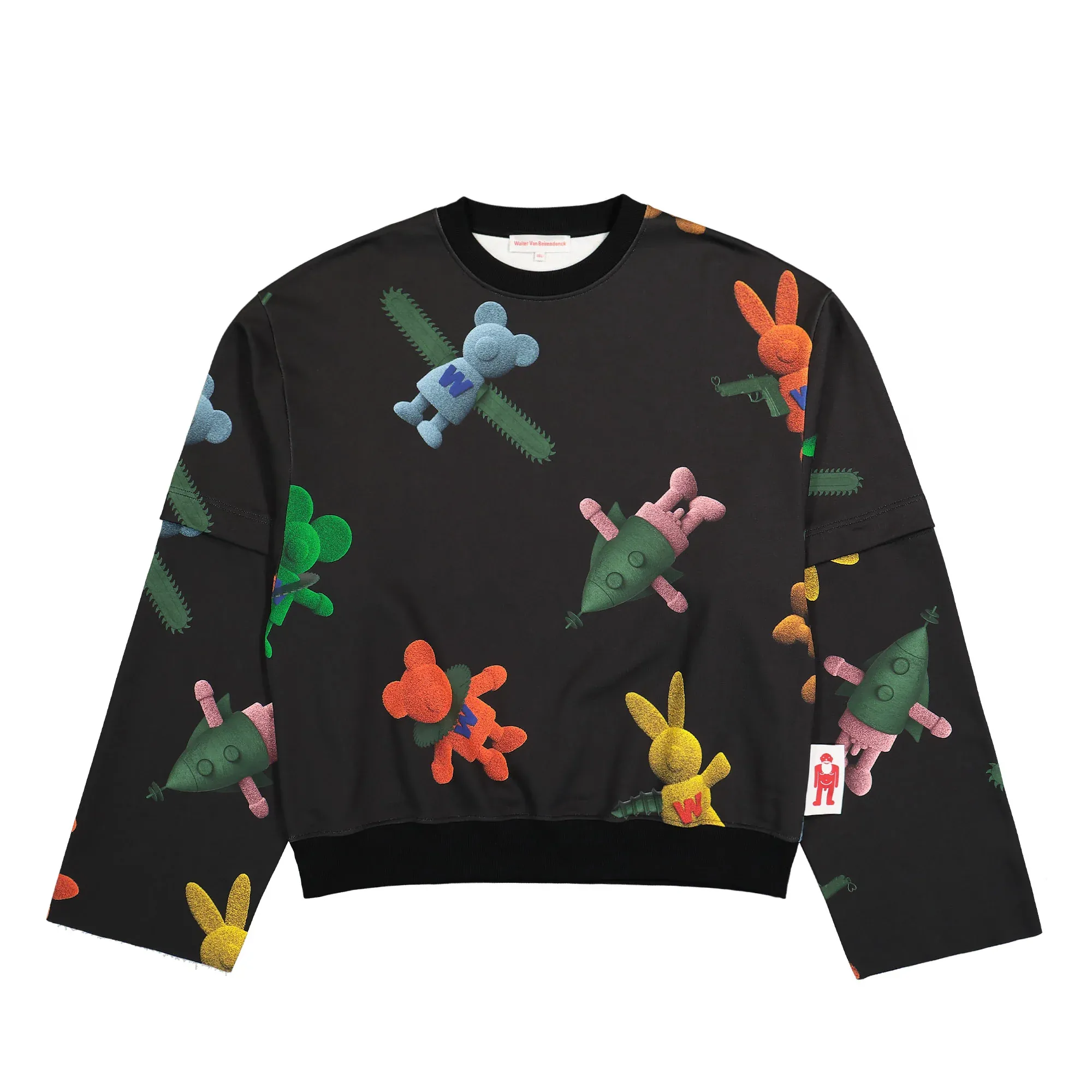 The Toyterror sweatshirt by Walter Van Beirendonck is anything but ordinary. With its striking all-over print, it immediately grabs attention and channels the designer’s signature playfulness and provocation straight to your look. A clever detail: the sleeves can be detached thanks to the button placket – instantly transforming this oversized sweatshirt into a T-shirt. Perfect for switching up your style or adapting to the weather on the fly. Made from soft cotton and shaped with an extravagant silhouette, this piece blends comfort, functionality, and art. It’s a true statement for anyone who doesn’t just wear fashion – but lives it.