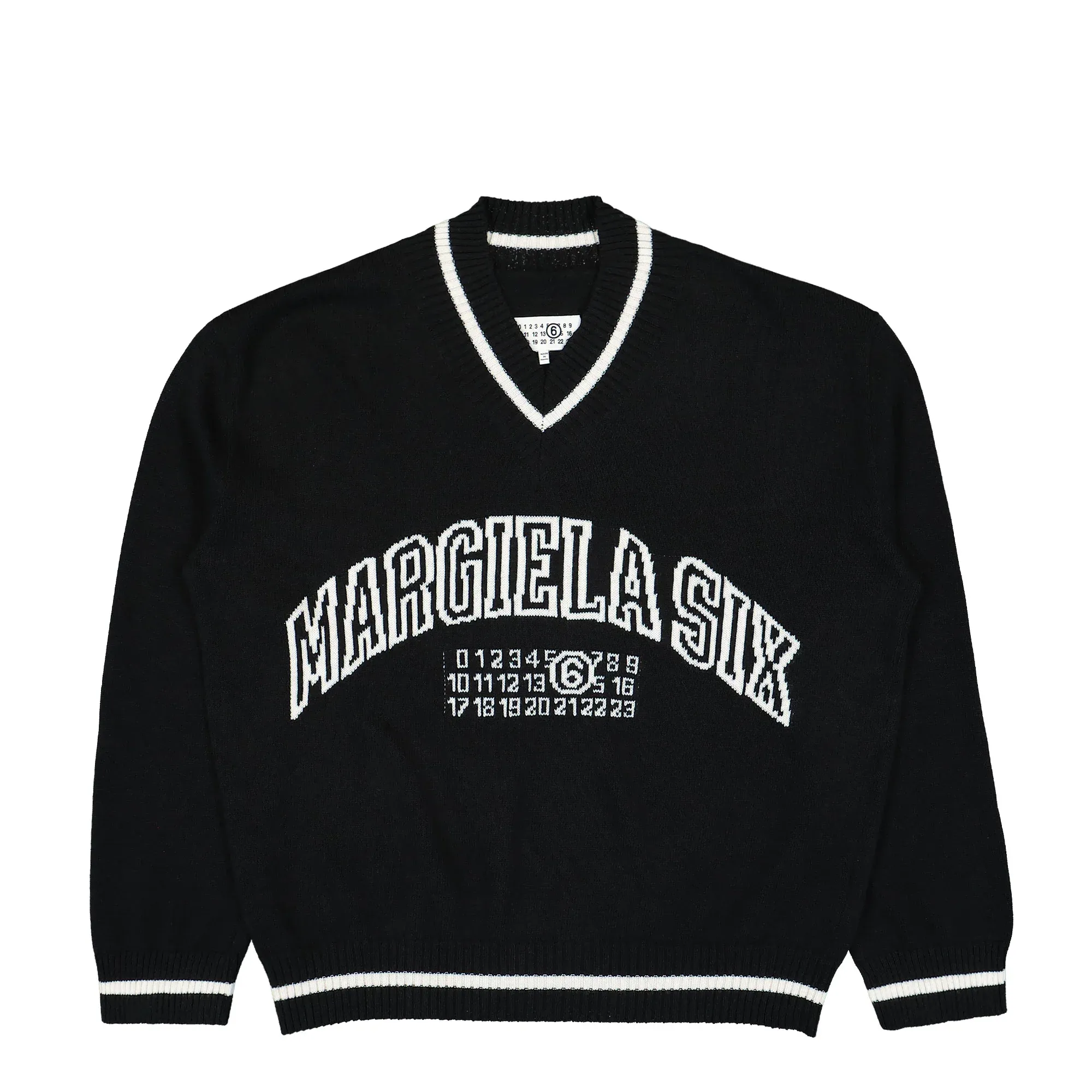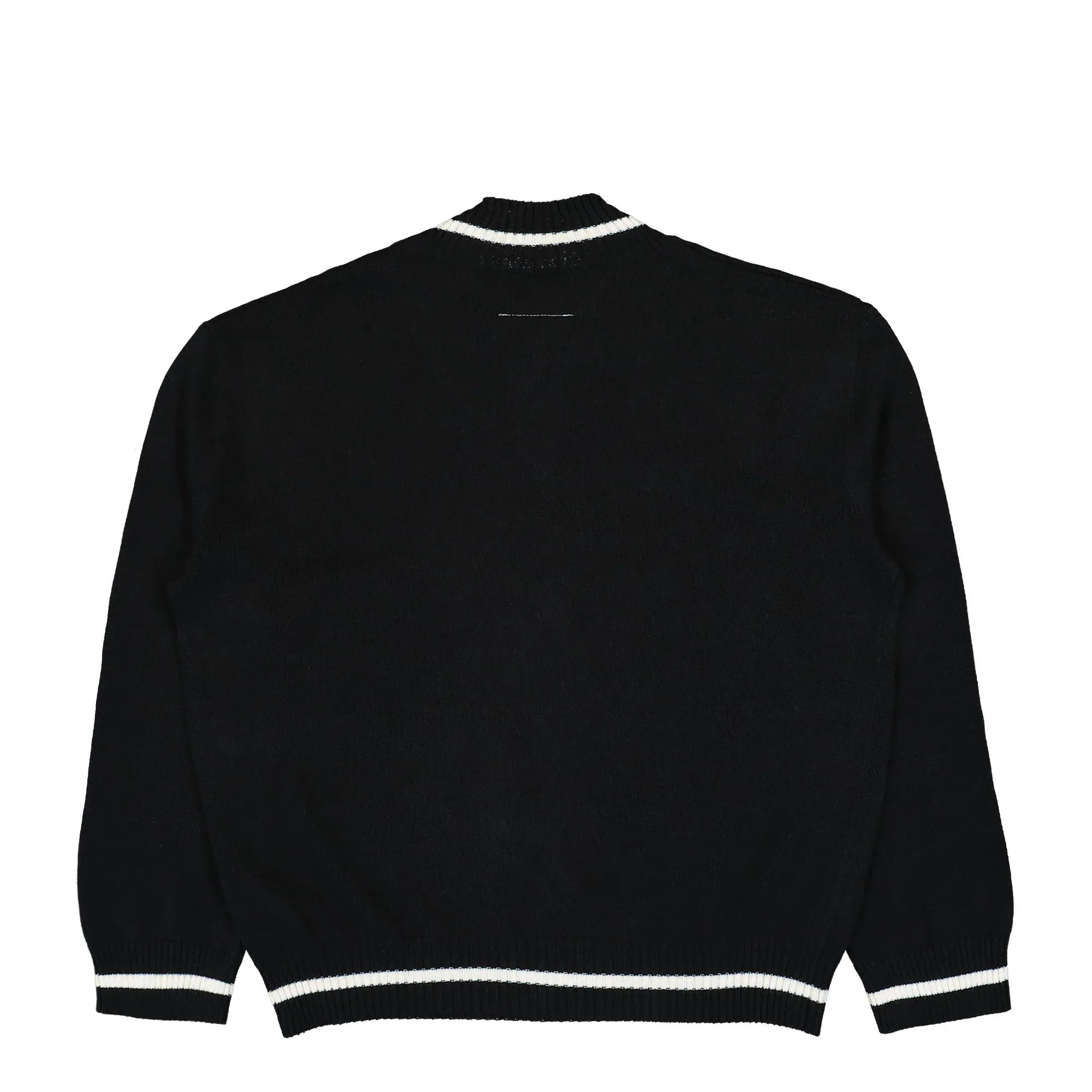 This V-neck sweatshirt from MM6 Maison Margiela stands out with its clean cut and refined design. The deep neckline adds a touch of relaxed sophistication, letting you style it effortlessly—layered over a tee or worn on its own. Made from a premium blend of cotton and wool, it feels soft against the skin while offering just the right amount of structure. Minimal in design but bold in presence, this piece shows off your sense of modern style without trying too hard. The black finish makes it a versatile staple that will quickly become a favorite in your wardrobe.